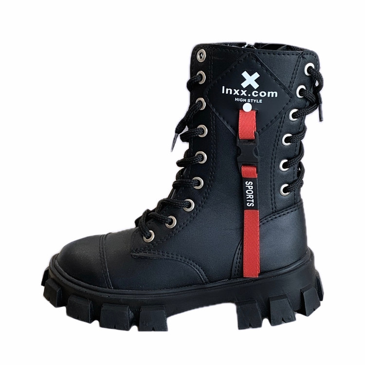 نیم بوت بچگانه چرم صنعتی زیپی و بندی مدل پوتین طرح high style