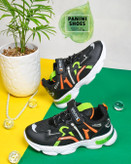 رویه ترکیب چرم مصنوعی و برزنت مرغوب تنفس پذیر و زیره T.P.U جفلکس مقاوم به سایش ساخته شده که در عین زیبایی، دوام بالا و قابلیت تمیز شدن آسان دارد. زیره پلیاورتان سبک و انعطافپذیر باعث میشود کودک هنگام راه رفتن یا دویدن احساس راحتی کند و از خستگی پا جلوگیری شود.