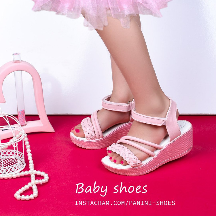 صندل دخترانه چرم مصنوعی بامبی گیس بافت لژدار کد 159753