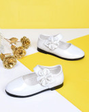 کفشهای باله تخت نقلی دخترانه مری جین بنددار مجلسی مدل بغل گل